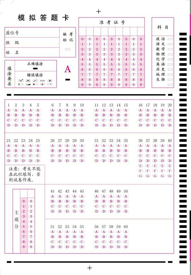 標準答題卡60題