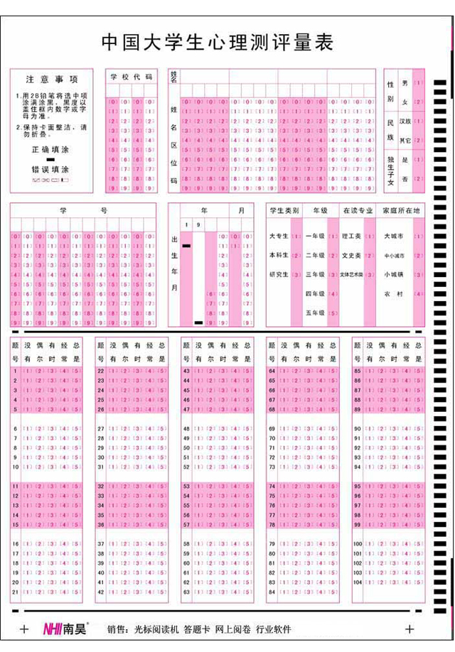 中國(guó)大學(xué)生心理測(cè)評(píng)答題卡